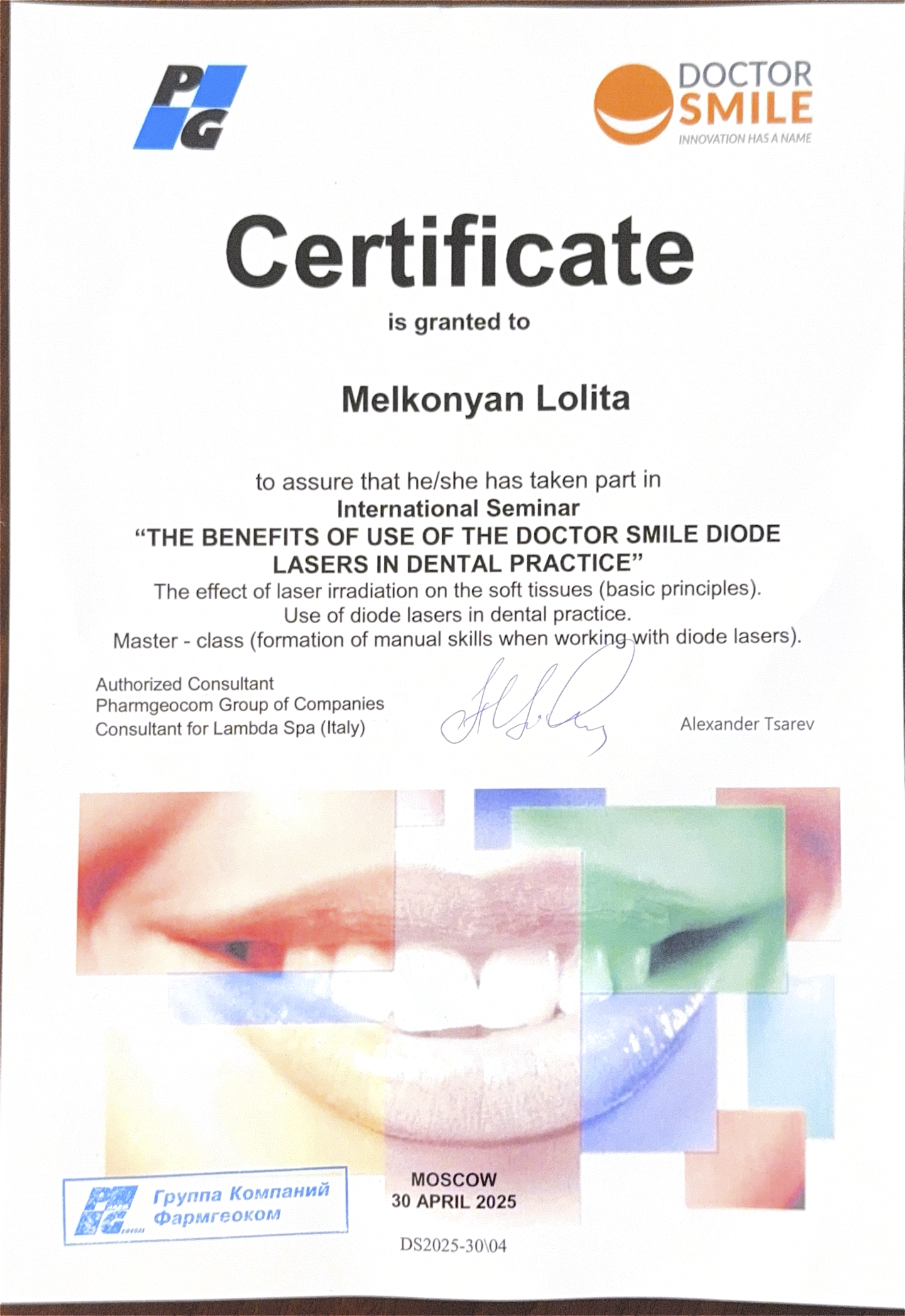 - 2025г -The benefits of use of the doctor smile diode lasers in dental practice. Alexander Tsarev .Doctor Smile